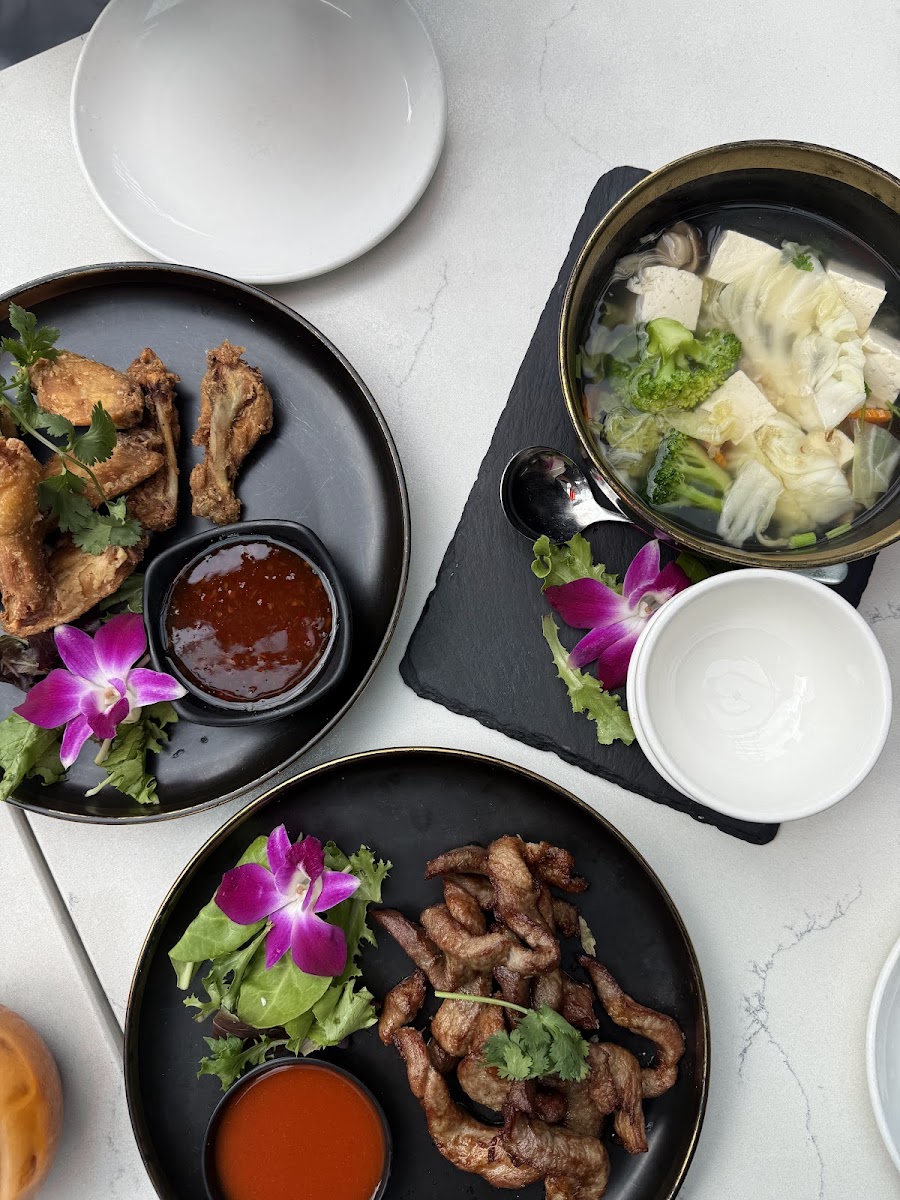 As you walk into the restaurant, you're greeted by a sophisticated ambiance, where contemporary design meets traditional Thai decor. The dining atmosphere is both welcoming and energetic, an ideal backdrop for enjoying delightful meals with friends, family, or that special someone. Relaxing here feels just right, whether you’re seated in an open-air patio, perfect for people-watching, or inside among the tasteful gold accents and intriguing furnishings.